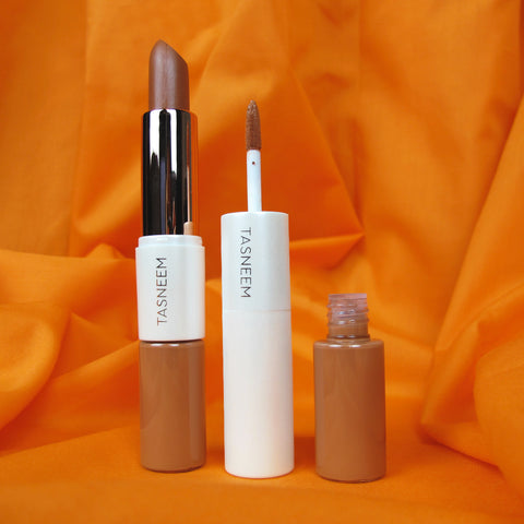 - Monochromatic Lip – Means business. You want that peachy pigment to be prominent and the stand out of your makeup look. Go ahead and apply our 2-IN-1 shade Dalia to the entire lip, using both ends to achieve comfortable, long lasting and full coverage results.